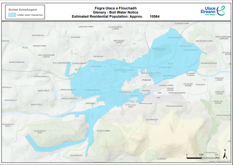 This notice applies to all consumers supplied by the Glenary Public Water Supply which includes parts of Clonmel Town centre and surrounding areas including Cashel Road, Cahir Road and Ring Road; and the Kilcomma/Finger Post areas in Co. Waterford. Customers can check if their property is included by visiting the water supply updates map and entering the property's Eircode or by calling the Uisce Éireann customer care helpline, open 24/7, on 1800 278 278. A map of the area is also available to view on the website.