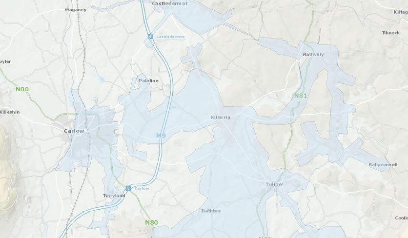 All customers supplied by the Carlow North Regional PWS, Tullow PWS and Carlow Town PWS (Graigcullen not impacted), which includes the following areas: