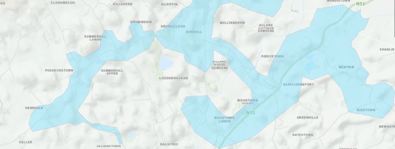 Areas impacted include; Drumconrath, Druminshin, Loughbrackan, Drumsillagh, Kearntown, Ballymacolgan, Drumgill Upper, Corstown, Rathtrasna, Drumgill Lower, Summerhill , Mooneystown, Hennigan, Posseckstown, Rathreynolds, Saintjohnsfort, Mackanhill, Birdhill, Aclare House Demesne, Caddelstown, Woodtown, Piercetown, Syddan, Mentrim, Bigstown, Clonbartan, Mandistown, Newstone, Mullyandrew, Greenan and surrounding areas. Please view the attached map for more information.