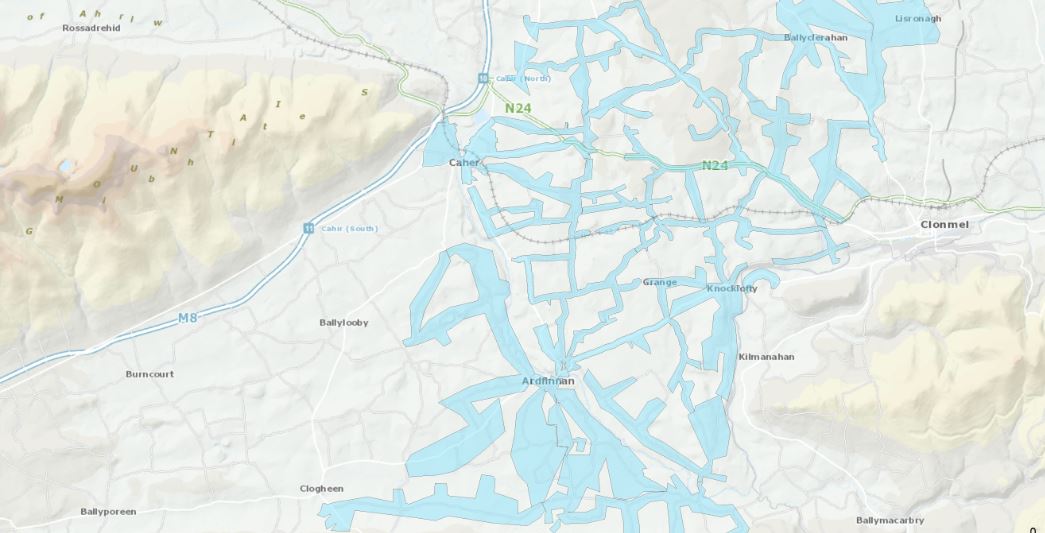 Ardfinnan and surrounding areas, Grange, Knocklofty, Newcastle, Ballyclerihan,  Cahir (Clonmel side of the bridge, Tipperary Road and Mitchelstown road{R913}), Ballingarrane (as far as the Cahir road roundabout Clonmel),Market Hill and Red City area (Fethard).